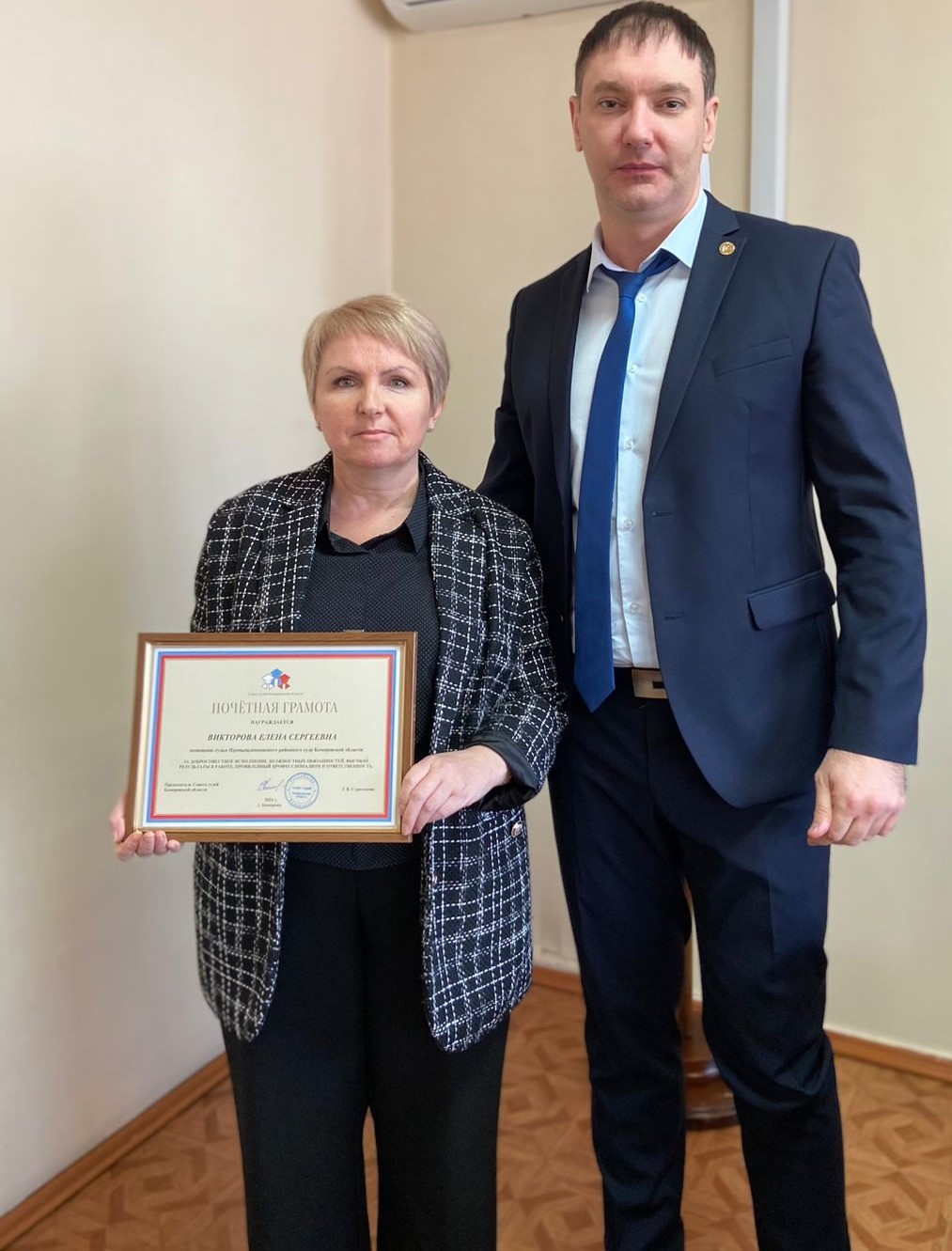 06.12.2024 в Промышленновском районном суде состоялось торжественная церемония празднования Дня образования судебной системы. На торжественном мероприятии работники аппарата Промышленновского районного суда были отмечены заслуженными наградами - почетными грамотами Совета судей Кемеровской области за добросовестное исполнение должностных обязанностей, высокие результаты, проявленный профессионализм и ответственность. С поздравлениями с профессиональным праздником и со словами благодарности к коллективу Промышленновского районного суда за высокий профессионализм и добросовестное служение правосудию обратился председатель Промышленновского районного суда Рыбников Е.В.